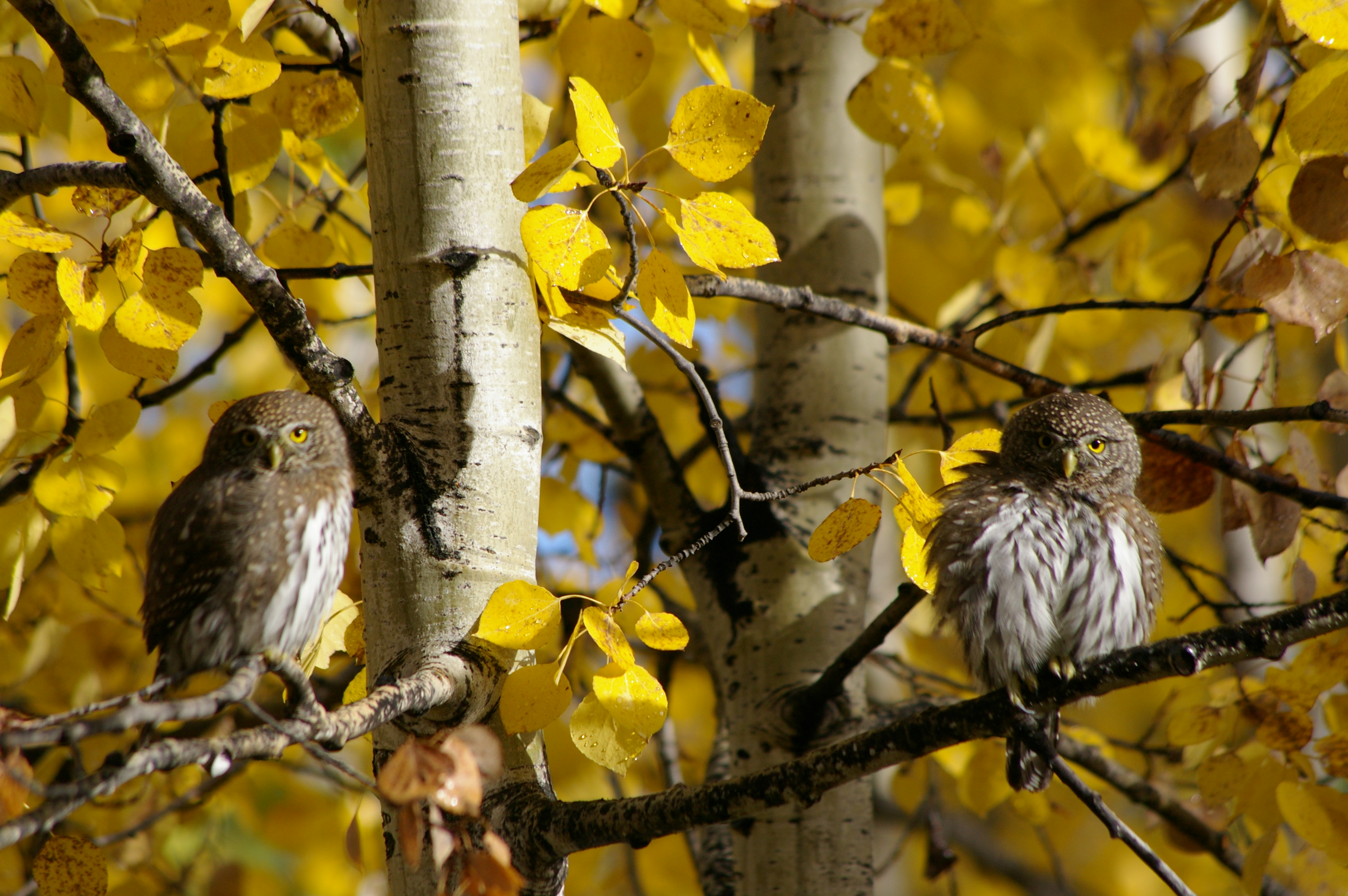 Figuring we wouldn’t be lucky enough to find this owl again, but deciding to try anyway, we went searching. We got lucky and found not one but two owls perched about 10 feet up in some other aspens.