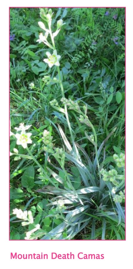 The Mountain Death Camas is another plant that Donna helped me identify. This plant has waxy, white, six petal flowers with grass-like narrow leaves and is a member of the lily family. It is quite stunning in the landscape but do note that it is slightly poisonous to people and livestock.
